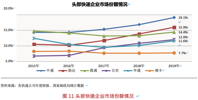 據(jù)統(tǒng)計(jì),快遞行業(yè)龍頭企業(yè)規(guī)模效應(yīng)優(yōu)勢(shì)更加明顯,并且隨著業(yè)務(wù)鏈的延伸,其成本優(yōu)勢(shì)在價(jià)格方面表現(xiàn)明顯,以三通一達(dá)、順豐、百世等行業(yè)龍頭企業(yè)為代表的快遞企業(yè)單票快遞價(jià)格持續(xù)下降,但是此類快遞行業(yè)頭部快遞公司企業(yè)毛利率并未大幅度下跌。但是快遞行業(yè)整體價(jià)格的下降,對(duì)于規(guī)模效應(yīng)不顯的中小企業(yè)影響巨大。