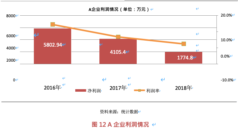 由于下游快遞行業(yè)持續(xù)降低運(yùn)營(yíng)成本,頭部快遞企業(yè)也紛紛成立自動(dòng)化設(shè)備公司,以滿足其自身對(duì)部分自動(dòng)化設(shè)備的需求,從而造成自動(dòng)分揀設(shè)備行業(yè)競(jìng)爭(zhēng)更加激烈,行業(yè)毛利率整體降低,且快遞企業(yè)之間的價(jià)格戰(zhàn)也必然會(huì)波及到自動(dòng)分揀設(shè)備行業(yè),促使行業(yè)優(yōu)勝劣汰。據(jù)統(tǒng)計(jì),因受行業(yè)內(nèi)部?jī)r(jià)格競(jìng)爭(zhēng)、下游快遞行業(yè)成本下調(diào)等原因影響,自動(dòng)分揀設(shè)備企業(yè)利潤(rùn)均受到不同程度影響,以 A 企業(yè)為例。
